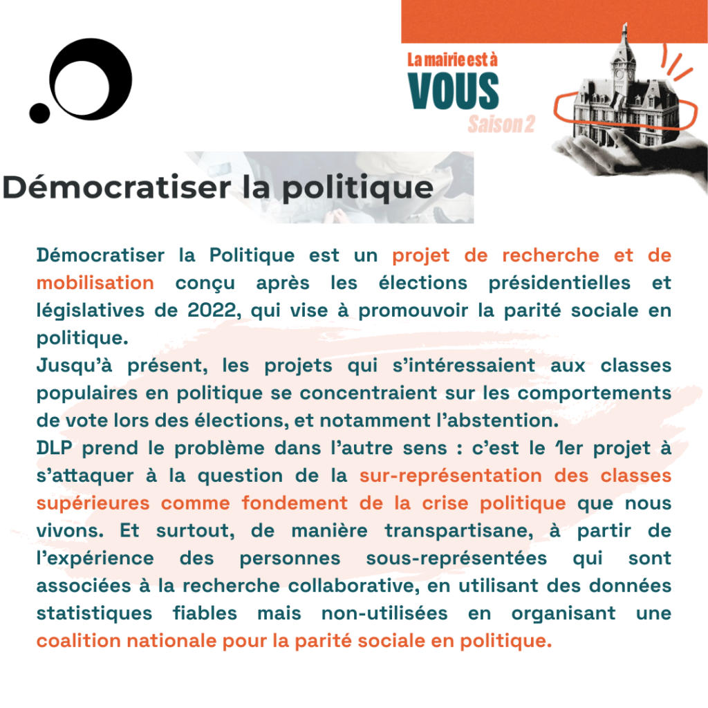 Démocratiser la Politique : « Nous sommes des acteurs et actrices des quartiers populaires et des ruralités, des éluEs, des chercheuses et chercheurs, réuniEs pour sortir la démocratie de l’entre-soi et imposer la parité sociale en politique » |